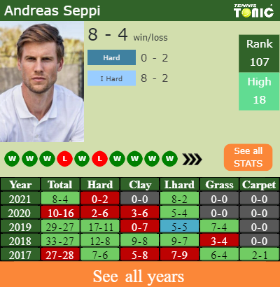 Seppi has a 8-4 win-loss record in 2021, 8-2 on indoor hard courts (See FULL STATS).