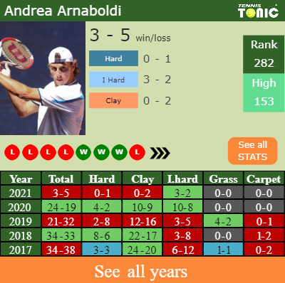 See updated oddsAs per the initial odds, Andrea Arnaboldi is the pick to win this match.