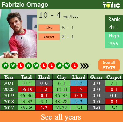 Ornago has a 10-4 win-loss record in 2021, 2-2 on indoor hard courts (See FULL STATS).