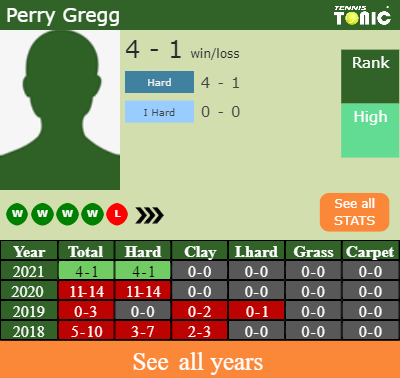 Perry has a 4-1 win-loss record in 2021, 0-0 on indoor hard courts (See FULL STATS).
