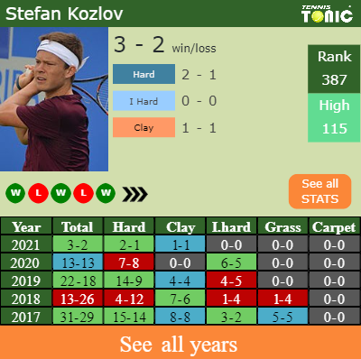 Stefan has a 3-2 win-loss record in 2021, 2-1 on hard (See FULL STATS).