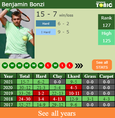 Talking about his overall career, Bonzi has an overall 213-128 record. He has a positive 51-42 record on indoor hard courts.