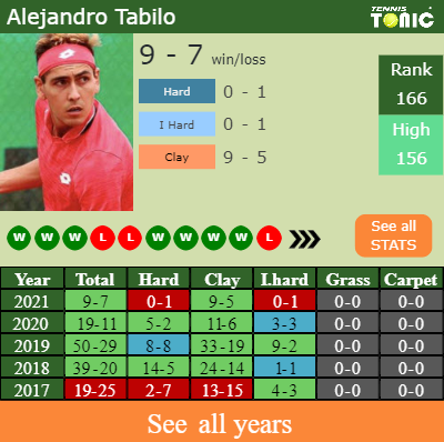The Chilean has a 9-7 win-loss record in 2021, 9-5 on clay (See FULL STATS).