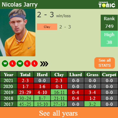 Nicolas has a 2-3 win-loss record in 2021, 2-3 on clay (See FULL STATS).