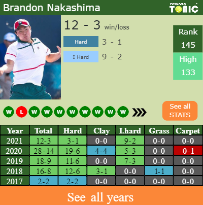 - Brandon NakashimaNakashima – Frances TiafoeTiafoe (0-1) – H2H and prediction