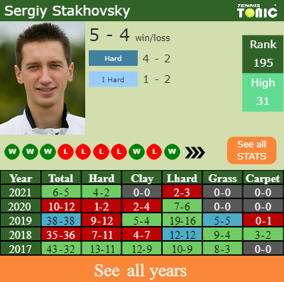 Stakhovsky has a 6-5 win-loss record in 2021, 2-3 on indoor hard courts (See FULL STATS).