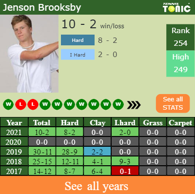 Brooksby has a 10-2 win-loss record in 2021, 2-0 on indoor hard courts (See FULL STATS).