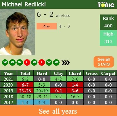 - Michael RedlickiRedlicki – Jenson BrooksbyBrooksby (1-1) – H2H and prediction