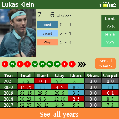 As per the initial odds, Lukas Klein is the pick to win this match.