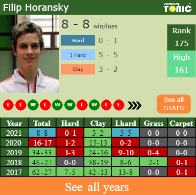 Horansky has a 8-8 win-loss record in 2021, 3-2 on clay (See FULL STATS).