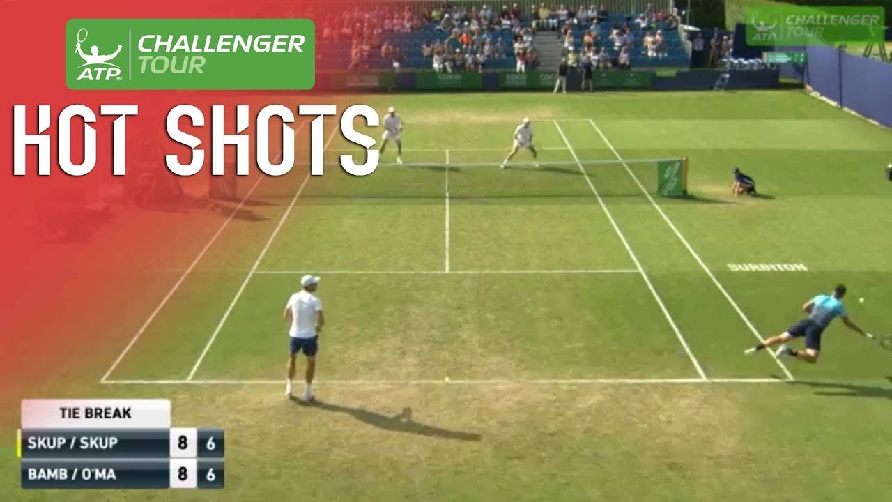 Watch as Jonny O`Mara put on a show in the doubles final at the ATP Challenger Tour event in Surbiton, lunging for a baseline dive and striking a twirling forehand