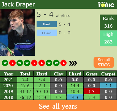 The Brit has a 5-4 win-loss record in 2021, 5-4 on hard (See FULL STATS).