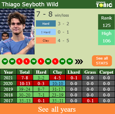 The Brazilian has a 7-8 win-loss record in 2021, 3-2 on hard (See FULL STATS).