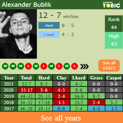 - Alexander BublikBublik – Laslo DjereDjere (0-0) – H2H and prediction