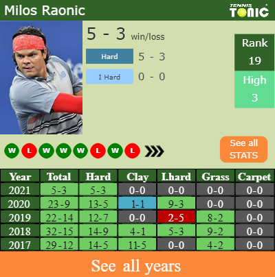 Prediction and head to head Milos Raonic vs. Jordan Thompson