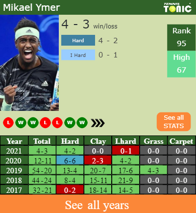 Mikael has a 4-3 win-loss record in 2021, 4-2 on hard (See FULL STATS).