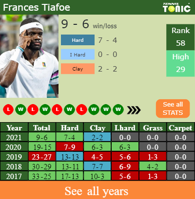 The American has a 9-6 win-loss record in 2021, 7-4 on hard (See FULL STATS).