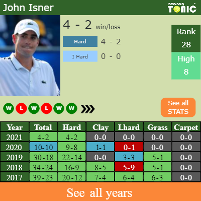 John has a 4-2 win-loss record in 2021, 4-2 on hard (See FULL STATS).