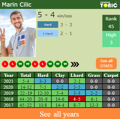 The Croatian has a 5-4 win-loss record in 2021, 3-3 on hard (See FULL STATS).