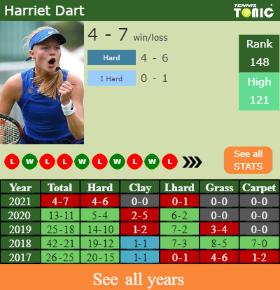 The Brit has a 4-7 win-loss record in 2021, 0-0 on clay (See FULL STATS).