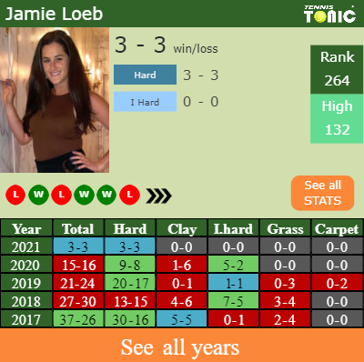 Jamie has a 3-3 win-loss record in 2021, 0-0 on clay (See FULL STATS).
