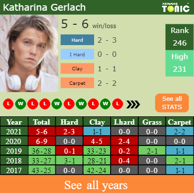Gerlach has a 5-6 win-loss record in 2021, 1-1 on clay (See FULL STATS).