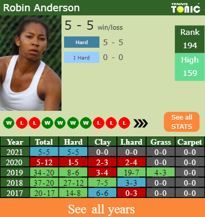 The American has a 5-5 win-loss record in 2021, 0-0 on clay (See FULL STATS).