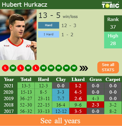 The Pole has a 13-5 win-loss record in 2021, 12-3 on hard (See FULL STATS).