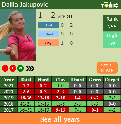 - Dalila JakupovicJakupovic – Harmony TanTan (0-0) – H2H and prediction