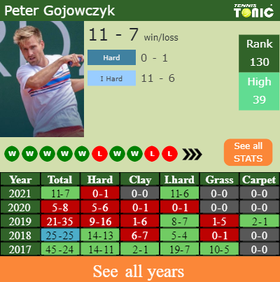 Peter has a 11-7 win-loss record in 2021, 0-0 on clay (See FULL STATS).