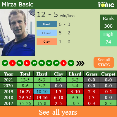 The Bosnian has a 12-5 win-loss record in 2021, 1-0 on clay (See FULL STATS).