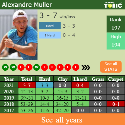 There is no head to head record between Alexandre Muller and Elias Ymer since this will be the first time that they will play each other in the main tour.