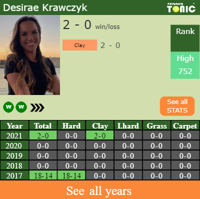 The American has a 2-0 win-loss record in 2021, 2-0 on clay (See FULL STATS).