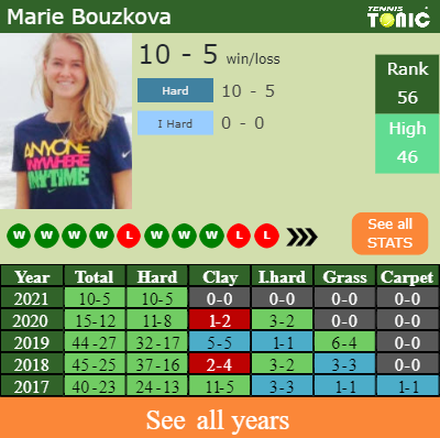 Marie has a 10-5 win-loss record in 2021, 0-0 on clay (See FULL STATS).