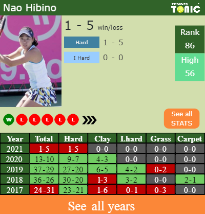Talking about her overall career, Nao has an overall 276-212 record. She has a negative 22-25 record on clay.