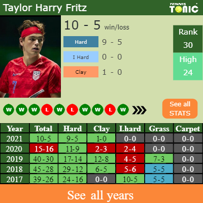 Fritz has a 10-5 win-loss record in 2021, 1-0 on clay (See FULL STATS).