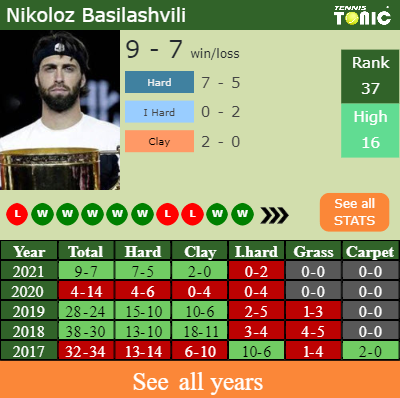 Basilashvili has a positive win-loss record in the last 10 years having won 56% of his matches (309-240). 2-0 on clay in 2021. Talking about his performance on the same surface of this tournament, Basilashvili has a 119-80 match record in the last years on clay.
