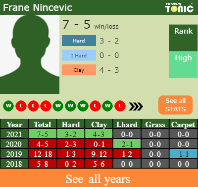 Talking about his overall career, Nincevic has an overall 28-36 record. He has a negative 18-22 record on clay.