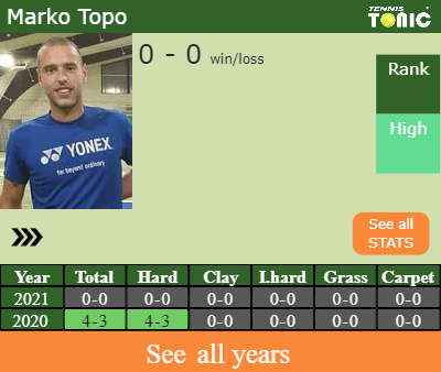 There is no head to head record between Marko Topo and Alessandro Giannessi since this will be the first time that they will square off in the main tour.
