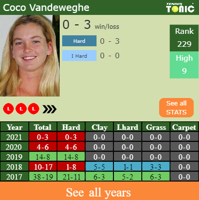 In terms of her career, Vandeweghe has an overall 278-238 record. She has a negative 36-41 record on clay.
