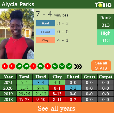 Alycia has a 7-4 win-loss record in 2021, 4-1 on clay (See FULL STATS).