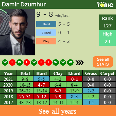 The Bosnian has a 9-8 win-loss record in 2021, 4-2 on clay (See FULL STATS).