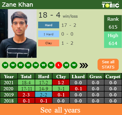 Zane has a 18-4 win-loss record in 2021, 17-2 on hard (See FULL STATS).