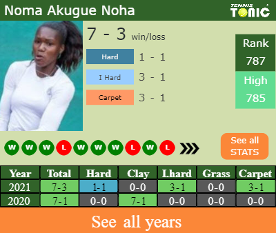Akugue has a 7-3 win-loss record in 2021, 0-0 on clay (See FULL STATS).