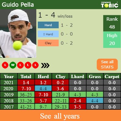 Pella has a 1-4 win-loss record in 2021, 0-2 on clay (See FULL STATS).