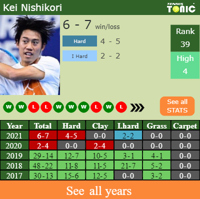 Talking about his overall career, The Japanese has an overall 541-250 record. He has a positive 128-56 record on clay.