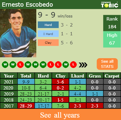 In terms of his career, Escobedo has an overall 209-156 record. He has a negative 28-31 record on clay.