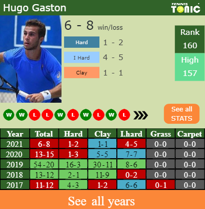 Talking about his overall career, Gaston has an overall 101-70 record. He has a positive 51-28 record on clay.