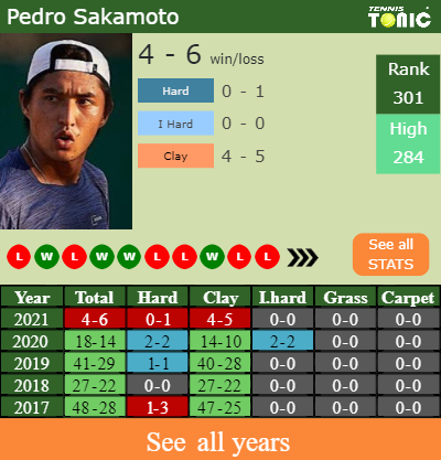 In terms of his career, Pedro has an overall 312-211 record. He has a positive 291-188 record on clay.