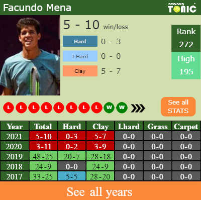 Facundo has a 5-10 win-loss record in 2021, 5-7 on clay (See FULL STATS).